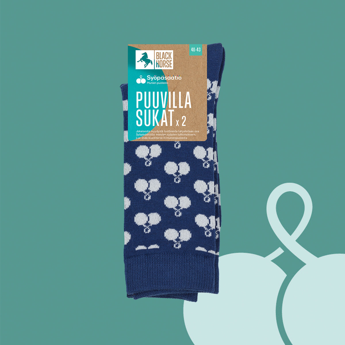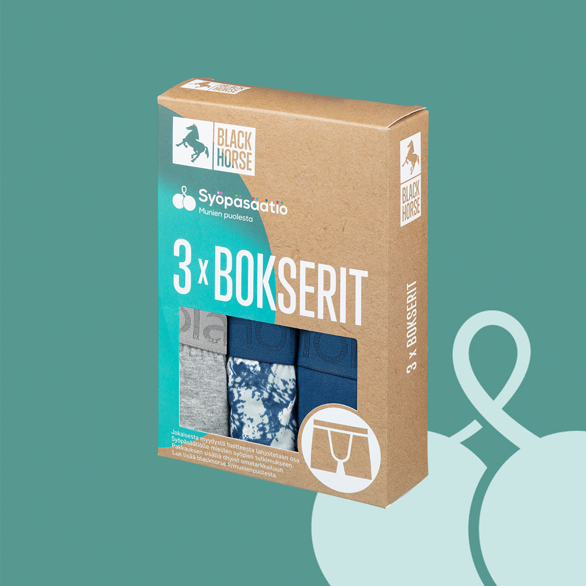Olemme mukana tukemassa suomalaista miesten syöpien tutkimusta yhdessä Syöpäsäätiön kanssa. Ostamalla Black Horse Munien puolesta -bokserit tai -sukat tuet miesten syöpien tutkimusta.